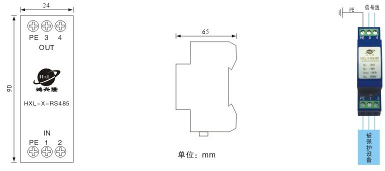 1:本產(chǎn)品安裝于信號通道和被保護設(shè)備之間,輸出端與被保護設(shè)備相連。